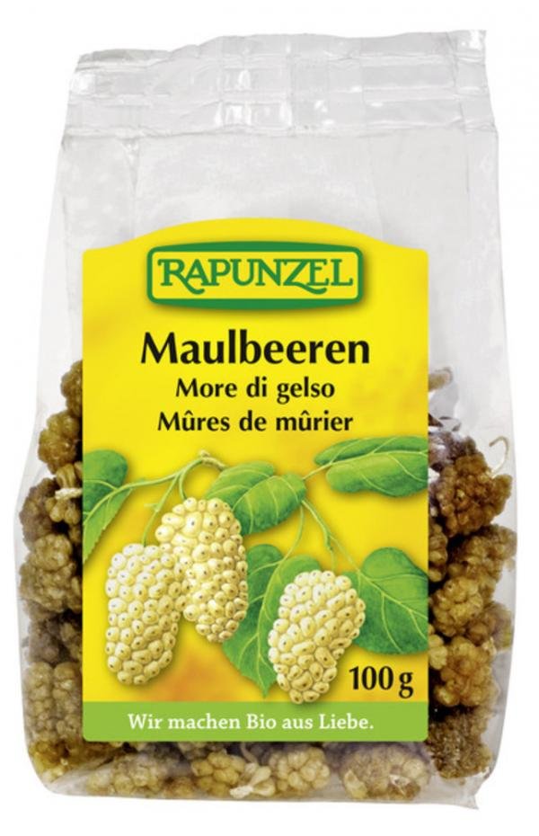 Die Früchte des Maulbeerbaums, deren Farbe von weiß bis rot reicht, ähneln in ihrer Form der Brombeere. Die weißen Maulbeeren von Rapunzel schmecken herrlich aromatisch und angenehm-süß nach Honig.