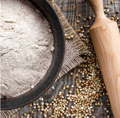 Buchweizenmehl eignet sich ideal für herzhafte Pfannkuchen und Gebäck, Blinis und Buchweizenkuchen.