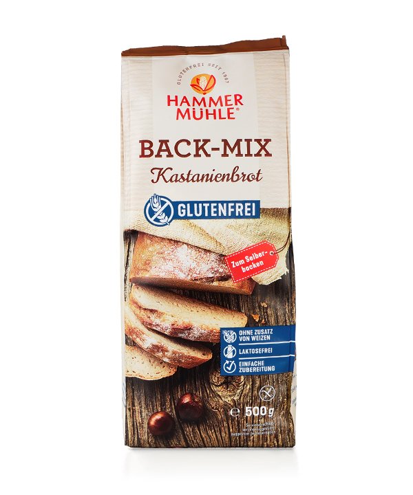 Mit diesem Back-Mix gelingt schnell und einfach ein mild-nussiges Kastanienbrot, das besonders saftig und aromatisch ist und lange frisch bleibt. Das Grundrezept kann nach Belieben mit gehackten Walnüssen oder gegarten Maronen abgewandelt werden.