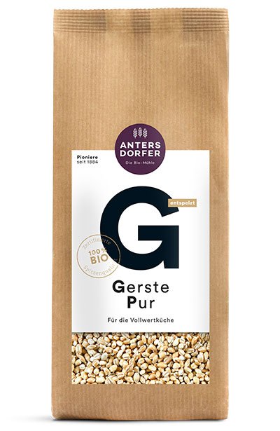 100 g Gerstenkörner in 200 ml Wasser über Nacht einweichen. Am Folgetag im Einweichwasser bei geringer Hitze ca. 40 Minuten garen. Salz oder Brühe erst am Schluss zugeben und weitere 15 Minuten quellen lassen.