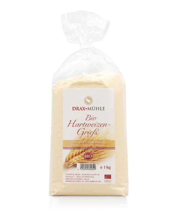 Bei Grieß unterscheidet man Weichweizen, Hartweizen- und Vollkorngrieß.