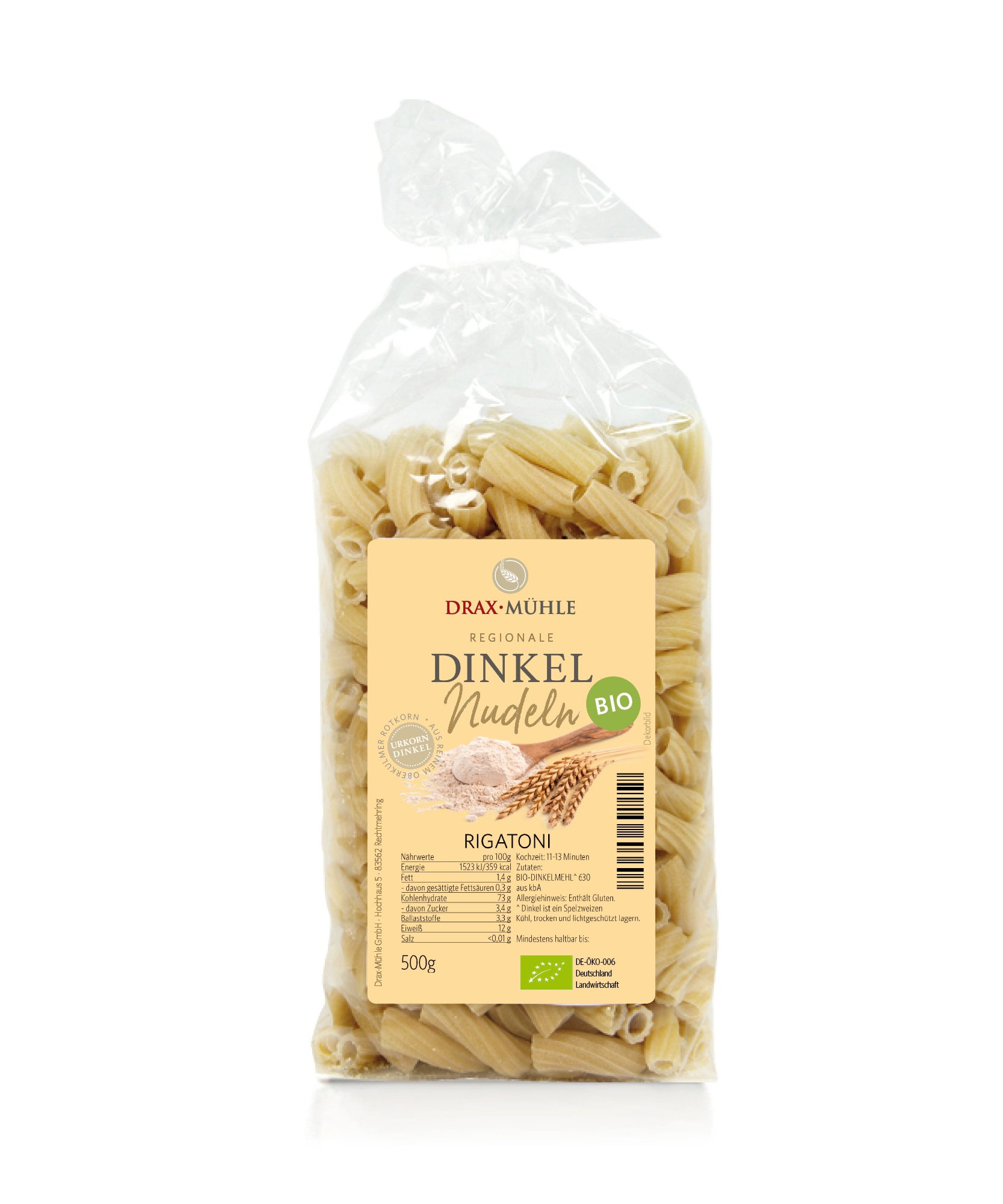 Bio Dinkel Rigatoni hell ohne Ei * 500 g