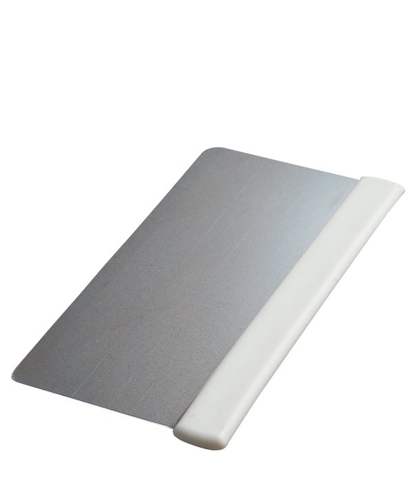 Teigabstecher mit extrabreiter, rostfreier Metallklinge und weissem Kunststoffgriff, Ecken der Klinge abgerundet. Klinge und Griff flexibel biegsam. Material: Griff - Kunststoff, Klinge - Edelstahl rostfreiMaße: 20 x 10,5 cm Farbe: weiß