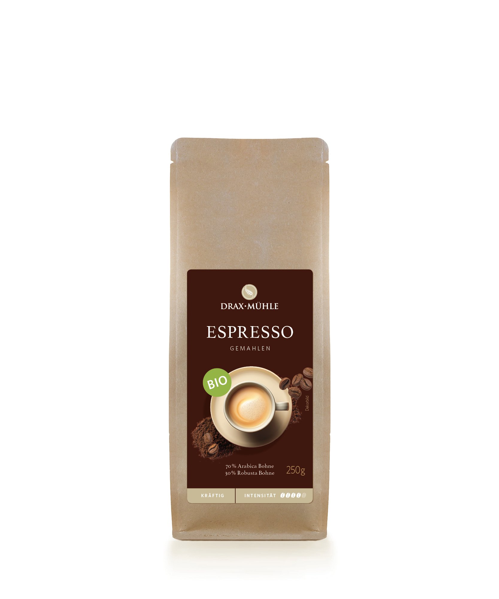 Unser frisch gemahlener Espresso eignet sich besonders gut für Siebträgermaschinen und in Espressokocher.