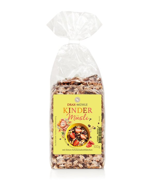 Haferflocken, Weizenflocken, Gerstenflocken, Sultaninen (mit Sonnenblumenöl), Vollmilchschokolade 11% (Zucker, Kakaomasse, Vollmilchpulver, Kakaobutter, Emulgator: Sojalecithin, Vanillin), Cornflakes (Mais, Zucker, Salz, Gerstenmalzextrakt), Zartbitterschokolade 5% (Zucker, Kakaomasse, Kakaobutter, Emulgator: Sojalecithin, Vanillin), Reis gepufft 0,8%, Reisextrudat (Reisvollkornmehl), Erdbeeren gefriergetrocknet 0,7%, Überzugsmittel: Gummi arabicum.